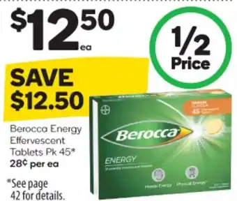 | Berocca Energy Effervescent Tablets Pk 45* 28¢ per ea | Woolworths | $12.50 | 12 June 2023 | 04 July 2023 | |||