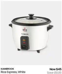 1Myer KAMBROOK Rice Express, White offerKAMBROOK Rice Express, WhiteMyer$54.95$45.00$9.95 Discount10 February 202601 March 2026 View offer