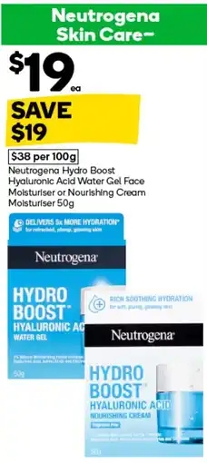 Woolworths Neutrogena hydro boost hyaluronic acid water gel face moisturiser or nourishing cream moisturiser offer