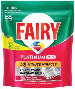 IGA Fairy Platinum Plus 30 Minute Miracle Lemon Dishwasher Capsules offer