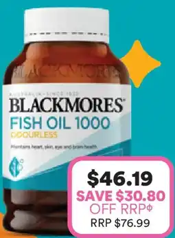 Woolworths Blackmores Fish Oil Odourless 1000mg Capsules offerBlackmores Fish Oil Odourless 1000mg Capsules Pk 200Woolworths$40.00$20.00$20.00 Discount31 December 202506 January 2026