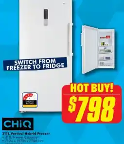 | CHIQ 380L Vertical Hybrid Freezer • Hybrid Fridge to Freezer • 710w x 1855h x 770d mm CSH380NWL3 | The Good Guys | $1,199.00 | $958.00 | $241.00 Discount | 15 June 2023 | 21 June 2023 | |