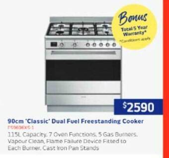 | Smeg 90cm Dual Fuel Freestanding Classic Cooker | Designer Appliances | $2,990.00 | $2,890.00 | $100.00 Discount | 20 October 2025 | 02 November 2025 | |