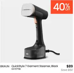 Myer Braun quickstyle 3 pro garment steamer offerBraun quickstyle 3 pro garment steamerMyer$99.00$55.0040% off10 February 202601 March 2026
