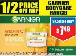 Chemist Warehouse Garnier Body Vitamin C Nutri-Glow Body Cream offerGarnier Body Vitamin C Nutri-Glow Body Cream 380 mLChemist Warehouse$7.4929 January 202611 February 2026