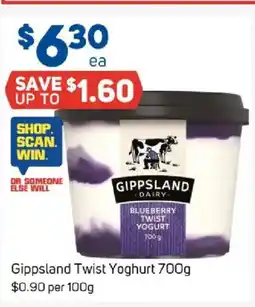 Foodland Gippsland twist yoghurt offerGippsland twist yoghurt 700 gFoodland$7.90$6.30$1.60 Discount28 January 202603 February 2026