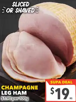 IGA Champagne Leg Ham Sliced or Shaved offerChampagne Leg Ham Sliced or ShavedIGA$23.50$22.00$1.50 Discount24 December 202521 December 2025