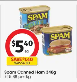 1Coles Spam Canned Ham offerSpam Canned Ham 340gColes$6.80$5.40SAVE $1.4021 January 202627 January 2026 View offer