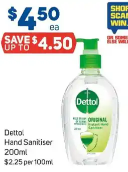 1Foodland Dettol Hand Sanitiser offerDettol Hand Sanitiser 200 mlFoodland$4.5004 March 202610 March 2026 View offer