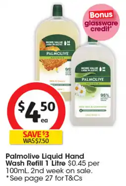 Coles Palmolive Liquid Hand Wash Refill offerPalmolive Liquid Hand Wash Refill 1 LitreColes$7.50$4.50$3.00 Discount25 December 202521 December 2025