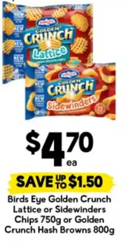 Birds Eye Golden Crunch Lattice or Sidewinders Chips or Golden Crunch Hash Browns