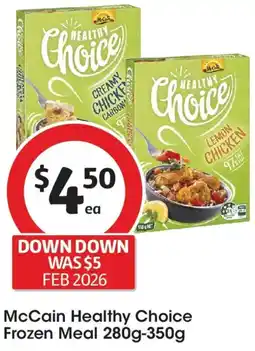 Woolworths Mccain healthy choice meals offerMccain healthy choice meals 280 - 350 gWoolworths$5.00$4.50$0.50 Discount04 February 202610 February 2026