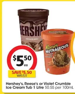 Coles Hershey's, reese's or violet crumble ice cream tub offer