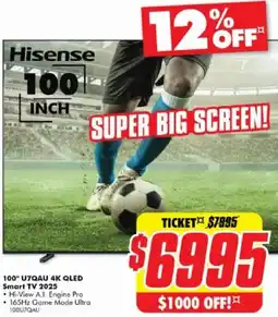 The Good Guys 100" U7QAU 4K QLED Smart TV 2025 offer100" U7QAU 4K QLED Smart TV 2025The Good Guys$7,995.00$6,995.0012%OFF22 May 202528 May 2025