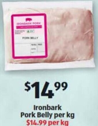 | Ironbark Pork Belly per kg | ALDI | $14.99 | 07 September 2022 | 13 September 2022 | |||