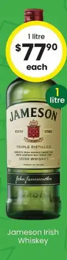 Woolworths Jameson Irish Whiskey offerJameson Irish Whiskey 1LWoolworths$82.00$80.00$2.00 Discount04 March 202610 March 2026