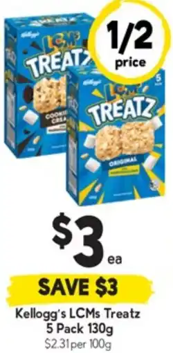 3Coles Kellogg's LCMs Treatz offerKellogg's LCMs Treatz 130g Coles$6.00$3.001/2 price21 January 202627 January 2026 View offer