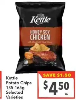 IGA Kettle Classic Potato Chips 150‑165g Selected Varieties offerKettle Classic Potato Chips 150‑165g Selected Varieties 165g IGA$6.00$3.00$3.00 Discount17 December 202514 December 2025