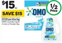 Woolworths OMO Laundry Liquid 2 Litre or Powder offerOMO Laundry Liquid 2 Litre or Powder 2 kg Woolworths$30.00$15.001/2 PRICE26 November 202502 December 2025