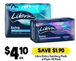 Woolworths Libra Ultra Thin or Extra Pads Pk 6-14 offerLibra Ultra Thin or Extra Pads Pk 6-14Woolworths$6.00$3.90$2.10 Discount22 April 202628 April 2026