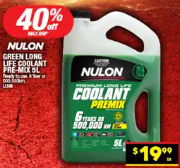 | Nulon premium long life coolant premix 5 l | Autopro | $19.99 | 40% off | 11 February 2026 | 08 March 2026 | ||