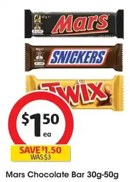 2Coles Mars Chocolate Bar offerMars Chocolate Bar 30 g -50 gColes$3.00$1.50$1.50 Discount22 April 202628 April 2026 View offer