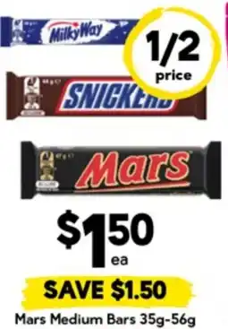 1Drakes Mars Medium Bars offerMars Medium Bars 35 g-56 gDrakes$3.00$1.50$1.50 Discount22 April 202628 April 2026 View offer