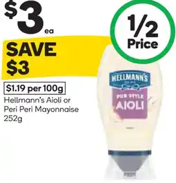 Woolworths Hellmann’s Aioli or Peri Peri Mayonnaise 252g offer