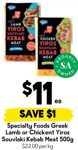 | Specialty Foods Greek Yiros Souvlaki Kebab Meat 500 g | Drakes | $12.00 | $11.00 | $1.00 Discount | 14 January 2026 | 20 January 2026 | |