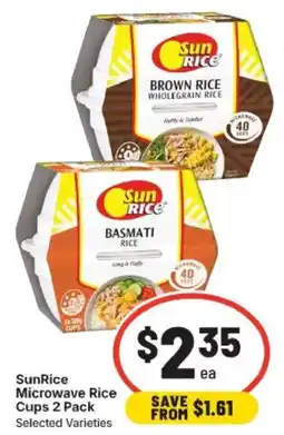 | Sunrice microwave plain rice cups 2 Pack | IGA | $3.50 | $2.10 | $1.40 Discount | 04 February 2026 | 10 February 2026 | |