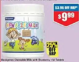 | 2 | Maxigenes chewable milk with blueberry | Chemist Warehouse | $9.99 | $3.96 OFF RRP | 01 January 2026 | 14 January 2026 | View offer | ||