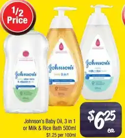 Johnson's Baby Oil, 3 in 1 or Milk & Rice Bath