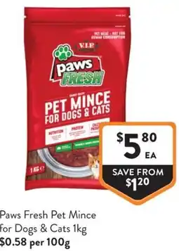 | Paws Fresh Pet Mince for Dogs & Cats 1kg | Foodworks | $5.00 | 01 September 2021 | 07 September 2021 | |||