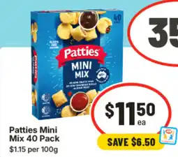 | Patties Mini Mix 40 Pack | IGA | $12.00 | 29 June 2022 | 05 July 2022 | |||