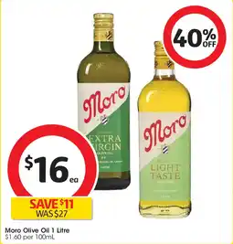 Coles Moro Olive Oil offerMoro Olive Oil 1 LitreColes$27.00$16.00$11.00 Discount21 December 202506 January 2026