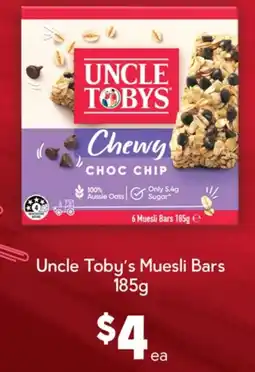 1Drakes Uncle Toby's Muesli Bars offerUncle Toby's Muesli Bars 185 gDrakes$4.0028 January 202603 February 2026 View offer
