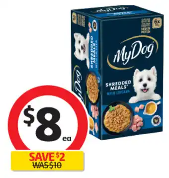| My Dog Shredded Dog Food 6x100g | Coles | $10.00 | $7.00 | $3.00 Discount | 22 May 2024 | 28 May 2024 | |