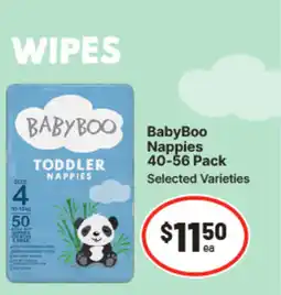 | BabyBoo Nappies 40-56 Pack | IGA | $11.50 | 07 August 2024 | 13 August 2024 | |||