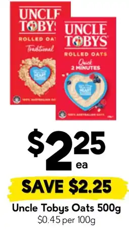 2Drakes Uncle Tobys Oats offerUncle Tobys Oats 500 gDrakes$4.50$2.25$2.25 Discount29 April 202605 May 2026 View offer