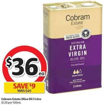 | Cobram Estate Olive Oil 3 Litre | Coles | $36.00 | 30 June 2021 | 06 July 2021 | |||