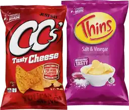 IGA Thins Chips 150-170g, Onion Rings 85g or CC’s Corn Chips 175g Selected Varieties offer