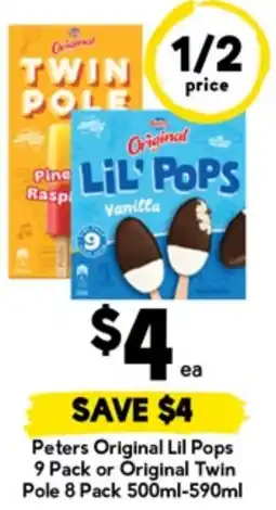 Ritchies Peters Original Twin Pole or LiL' Pops Ice Cream offerPeters Original Twin Pole or LiL' Pops Ice Cream 8 packRitchies$4.001/2 PRICE07 January 202613 January 2026