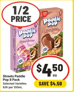 7IGA Streets Paddle Pop Selected Varieties offerStreets Paddle Pop Selected Varieties 8 packIGA$9.00$4.50$4.50 Discount25 February 202603 March 2026 View offer
