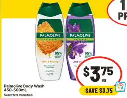 5IGA Palmolive Body Wash 450‑500mL Selected Varieties offerPalmolive Body Wash 450‑500mL Selected VarietiesIGA$7.50$3.75$3.75 Discount28 January 202603 February 2026 View offer