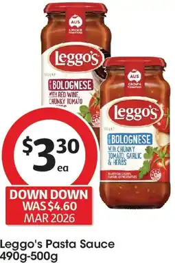 | Leggo's Chunky Pasta Sauce 490g-500g | Coles | $4.60 | $2.30 | $2.30 Discount | 24 September 2025 | 30 September 2025 | |