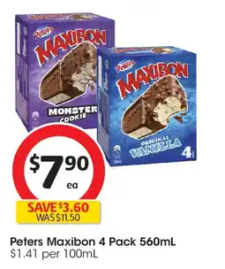 Coles Peters Maxibon 560mL offerPeters Maxibon 560mL 4 PackColes$11.50$7.90$3.60 Discount04 February 202610 February 2026