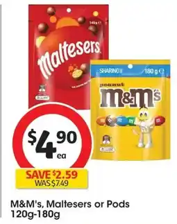 | Mars M&M's, Maltesers or Pods 120g-180g | Coles | $6.00 | $3.00 | $3.00 Discount | 04 September 2024 | 10 September 2024 | |