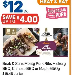 Foodland Beak & sons meaty pork ribs hickory bbq, chinese bbq or maple offer