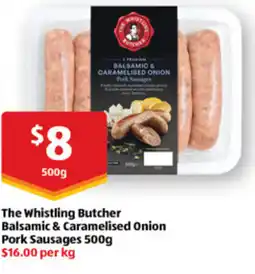 ALDI The Whistling Butcher Balsamic & Caramelised Onion Pork Sausages offer