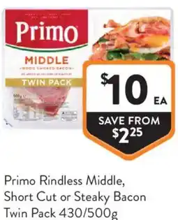 | Primo Shortcut, Streaky or Middle Bacon Twin Pack 430 - 500 g | Foodworks | $10.00 | 15 October 2025 | 21 October 2025 | |||